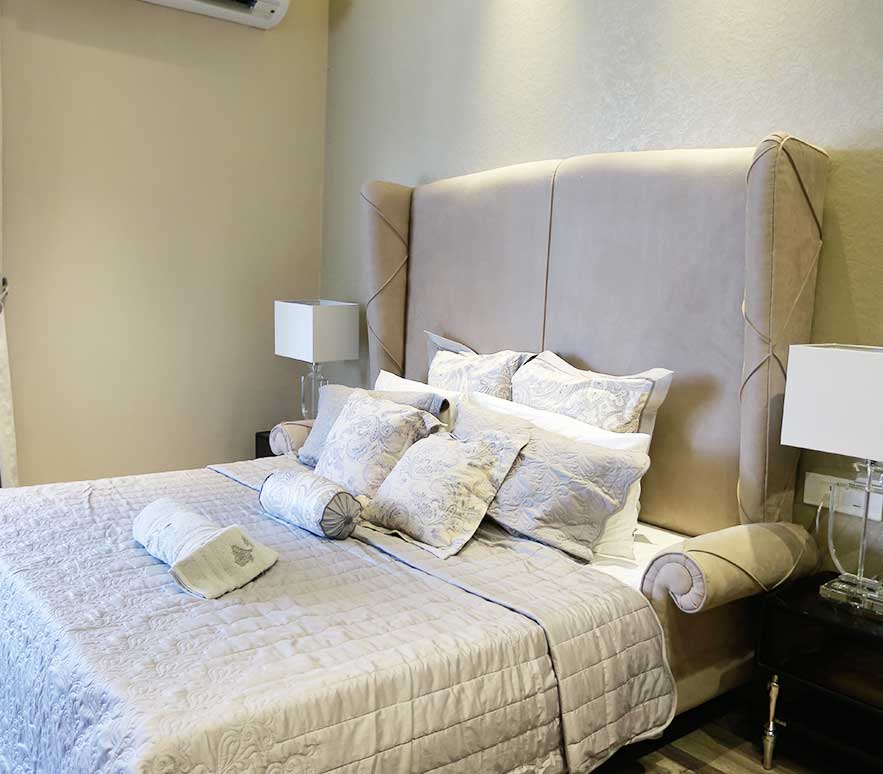The bedrooms of flats are furnished with laminated wooden wardrobes and space for led with AC is provided.