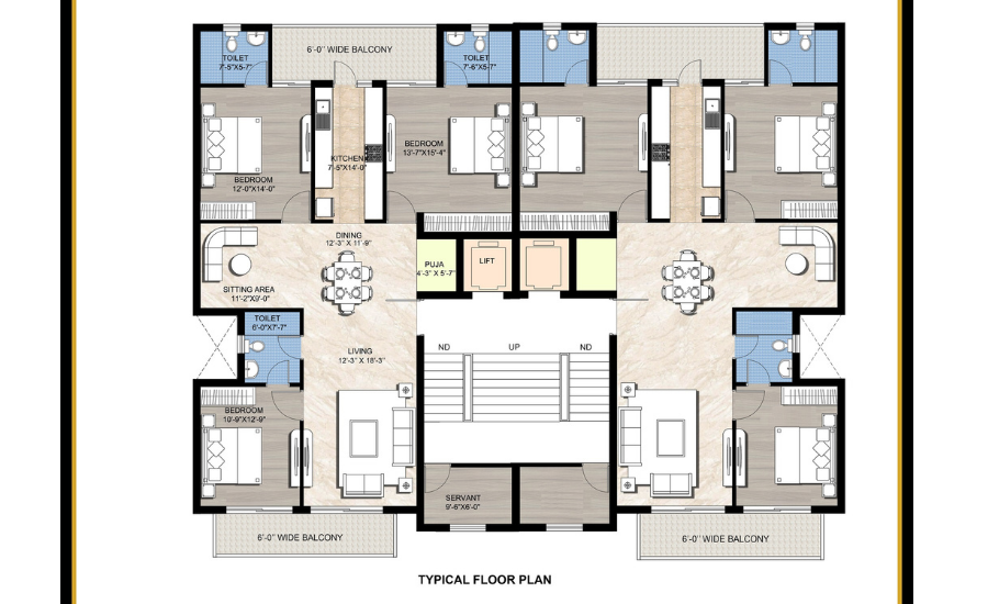 The interior is designed with proper ventilation concept in every corner of the flat. Refreshing view of Shivalik hills, the lush botanical garden makes the environment healthy and free from pollution.