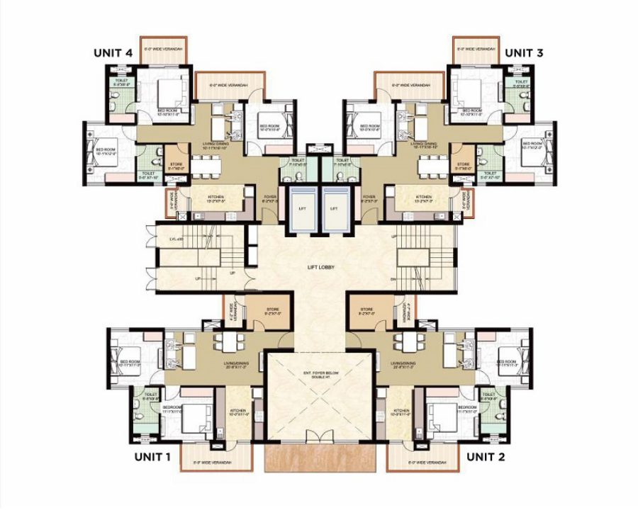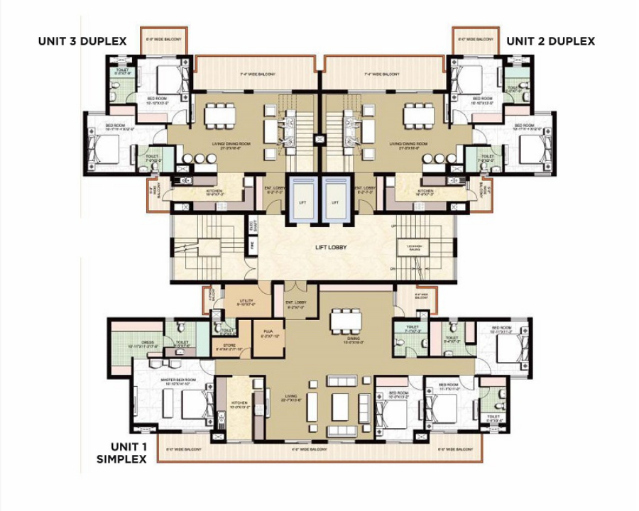 Vitrified tiles are used in all the rooms of the flats as well as in the drawing-room, dining area, in kitchen and balcony also.