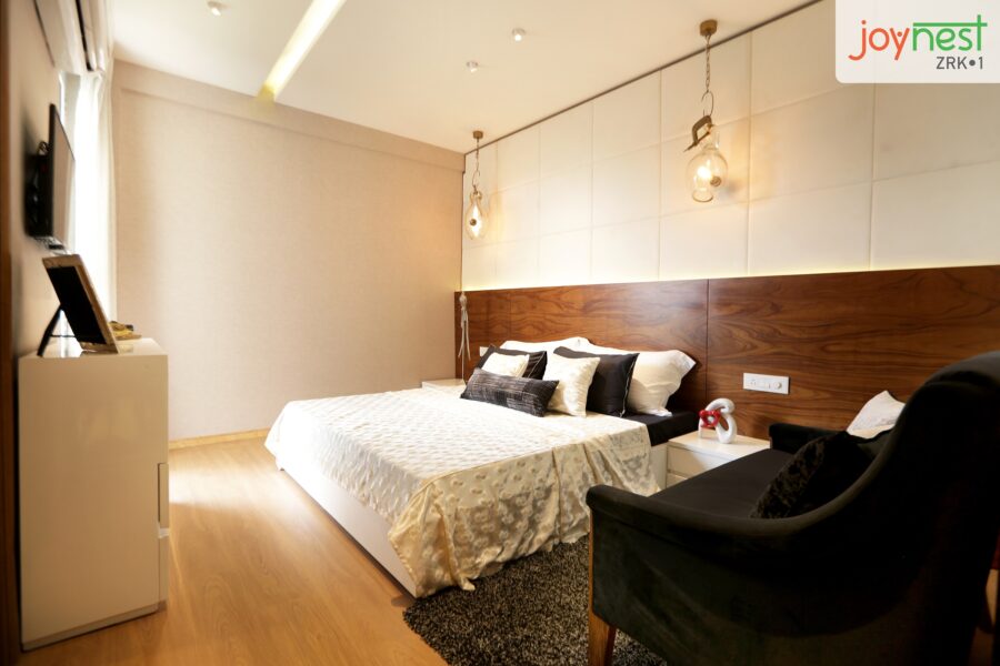Laminated wooden flooring is given in the master bedroom and Premium anti-skid tiles in all other rooms.