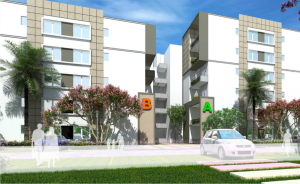 Premium anti-skid tiles are used for flooring with aluminium Sliding windows and laminated flush doors in all flats.