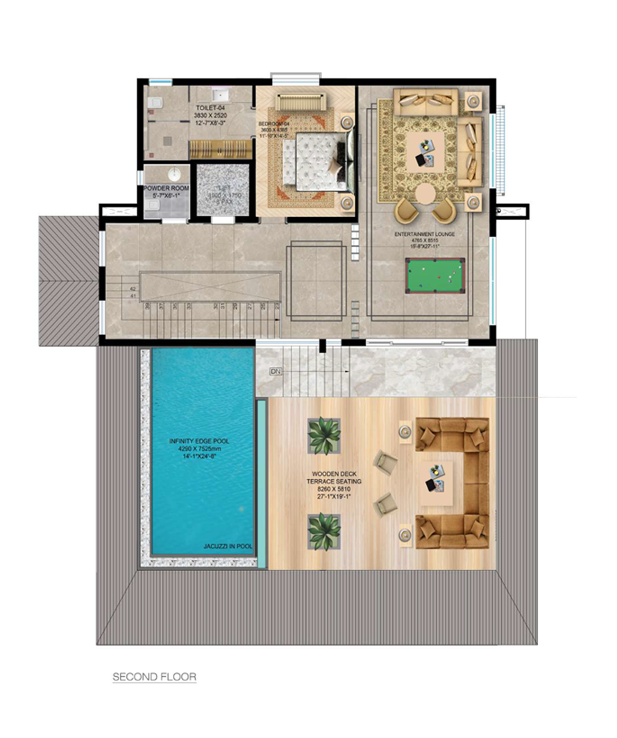 Experience unparalleled luxury with our meticulously designed large 4 and 5 BHK Estate Villas, having Built-up area of 4700 sq feet, located within a secure Gated Township spread across 75 Bighas of picturesque landscape.