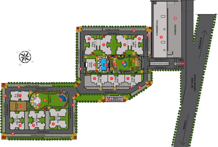 Basketball Court, Amphitheatre, Landscaped Park, Water Body, Club House, Swimming Pool, Pergola Fountain, Landscaped Park, Convenience Stores, Reserved Parking, Commercial Plaza, Commercial Parking