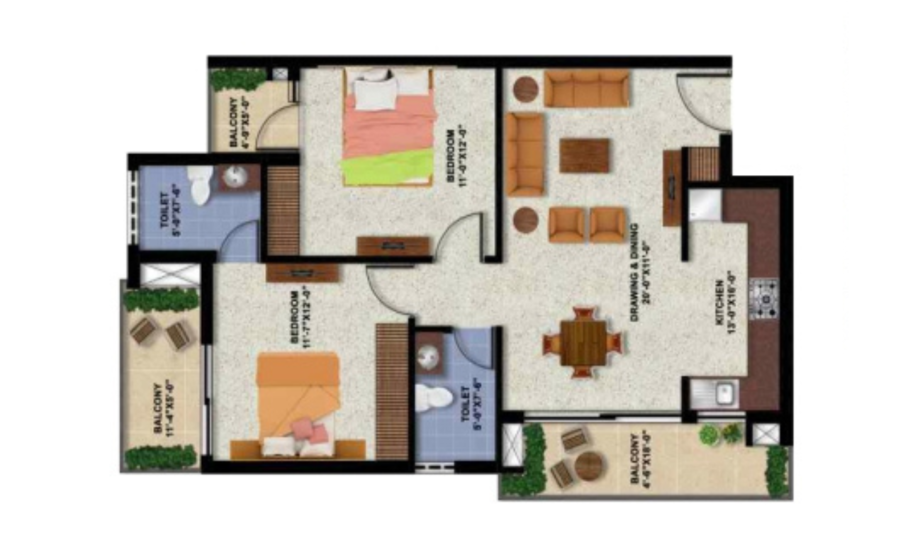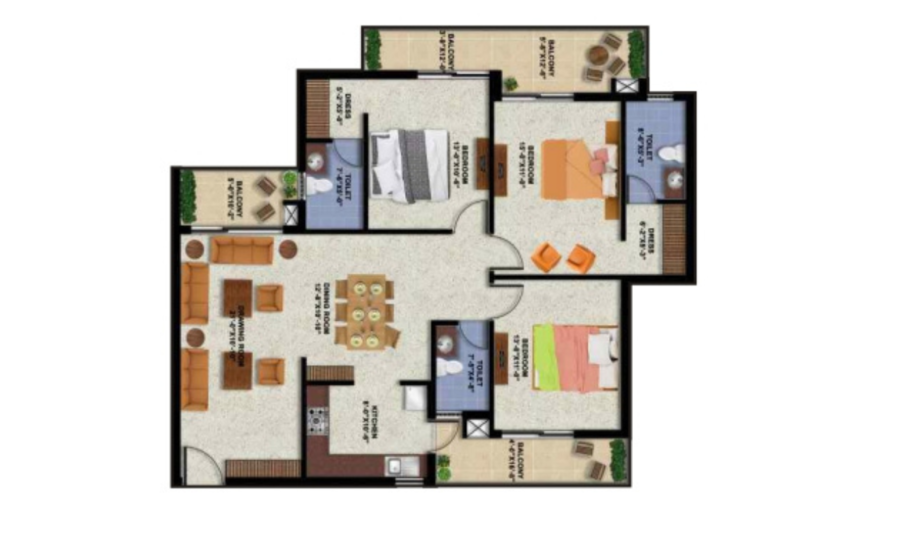 The bedroom has vitrified tiles flooring, laminated Doors, provision for AC and DTH and inbuilt wooden wardrobes.