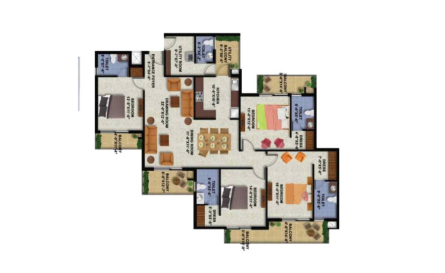 Uptown Skylla is spread over 5.84 acres of land where 70% of the total area is dedicated to open spaces it has 9 towers with 13 floors and 353 units.