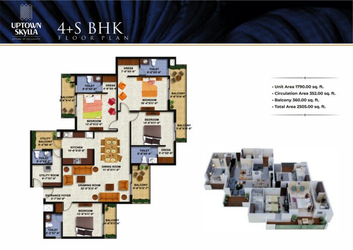 | 4 BHK+S | 2505 Sq.Ft. | 1,75,09,950 |